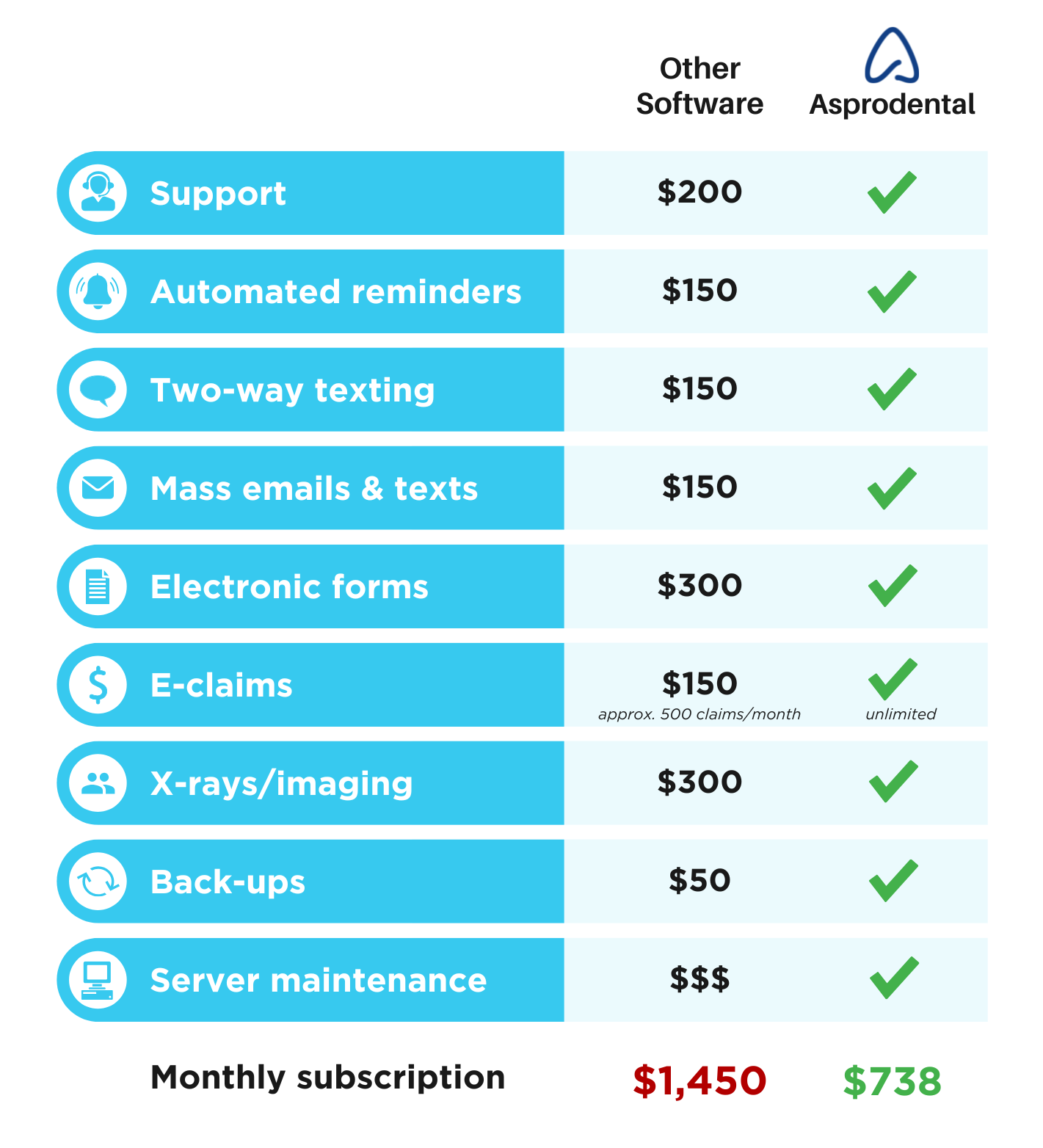 Asprodental’s standard package includes everything you need to run your practice, with additional modules available for those who want more.